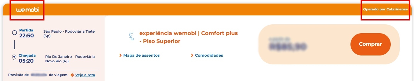 🚌 Disponível apenas em rotas operadas pela wemobi, BusCo, Cometa, Catarinense, 1001, Rápido Ribeirão e Expresso do Sul (exceto rotas intermunicipais Paraná, Santa Catarina e Categoria Cama).